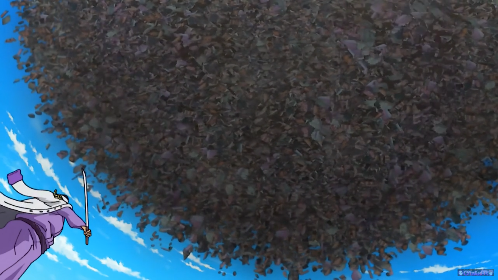 Issho soulevant un nombre énorme de débris.