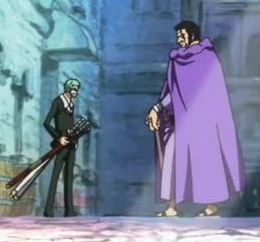 Il se sont affrontés, et semble reconnaître sa puissance. Plus tard, il l'aidera à arrêter la Birdcage, malgré le fait que Zoro soit un pirate.
