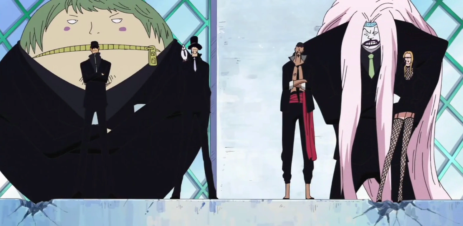 - Malgré le fait qu'au moins Lucci, Kaku et Kalifa ont des chambres qui sont répertoriées comme les leurs, Jabura a plutôt un jardin de style japonais qui est simplement répertorié comme la « tanière du loup » (狼の間, ookami no ma).
