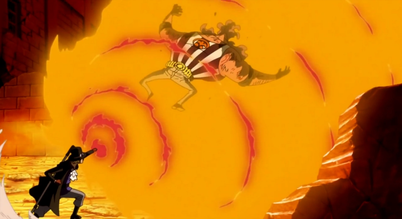 - ↑ Chapitre 1063 Burgess fait un démonstration de sa force surhumaine en jetant une montagne sur l'équipage du Heart