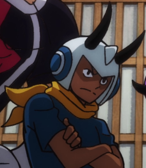 Dans l'anime, Jumper est représenté comme un homme à la peau foncée, sans tatouages ni gants. Il porte une chemise bleue sans motifs et une écharpe jaune. Son casque est complètement blanc, mais ses écouteurs sont bleus et il a une protubérance sur le front, ce qui est assez différent du manga.