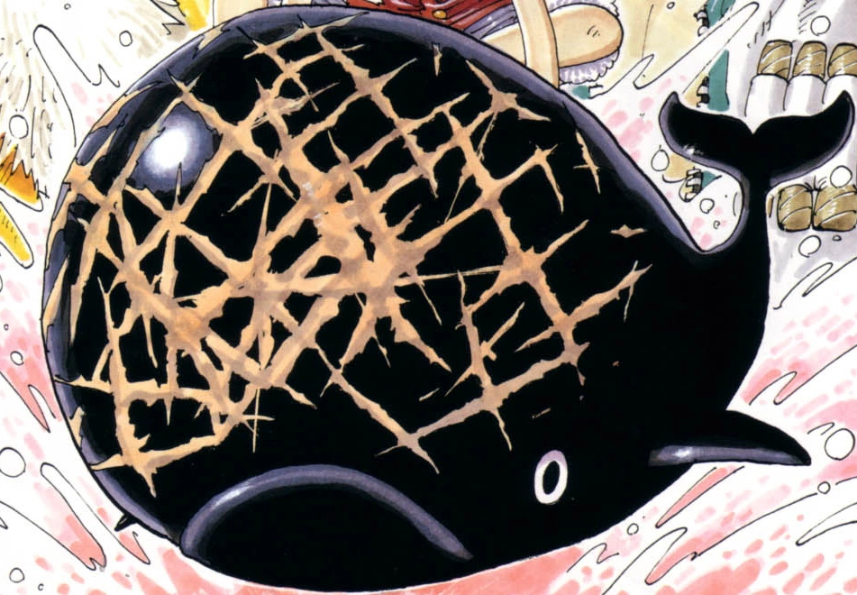 Pendant ce temps, après avoir quitté l'Île des Hommes-Poissons, L'Équipage du Chapeau de Paille a découvert qu'un groupe de baleines de la même espèce a des cicatrices similaires à celles de Laboon.