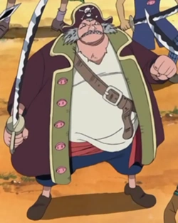 Il est vu pour la première fois en train d'attaquer des villageois pour les voler, mais il sera vaincu par Crocodile qui affirme ne pas jouer dans la même catégorie que lui niveau puissance.[4] Ce dernier aspirera tout l'eau de son corps grâce à son Fruit du Démon.[4] On peut penser qu'il est mort après cette bataille.
