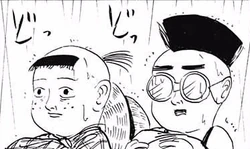 | Shudan, Chapitre 6 | Un "voisin passionné de football", comme la note de l'auteur le décrit, apparaît coiffé d'un chapeau de paille aux côtés des autres parents tout au long du chapitre. |