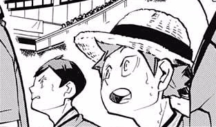 | Haikyu!!, Chapitre 262 | Un chapeau de paille peut être vu sur Hinata quand le tir de Tanaka sort du terrain. Le chapeau de paille est absent de la version tome. |