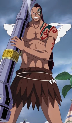 - ↑ One Piece Manga & Anime - Tome 66, Chapitre 651 et Épisode 571 - Première apparition d'un membre de la tribu des trois yeux.