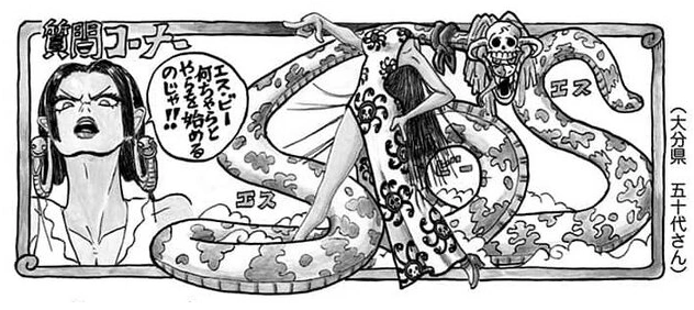 Hé... Oh ! C'est pas cool ! T'aurais pu me laisser faire, non ?! C'est le tome 100, après tout ! Hen... Han... En plus, je ne vois aucune beauté aux gros seins ! |