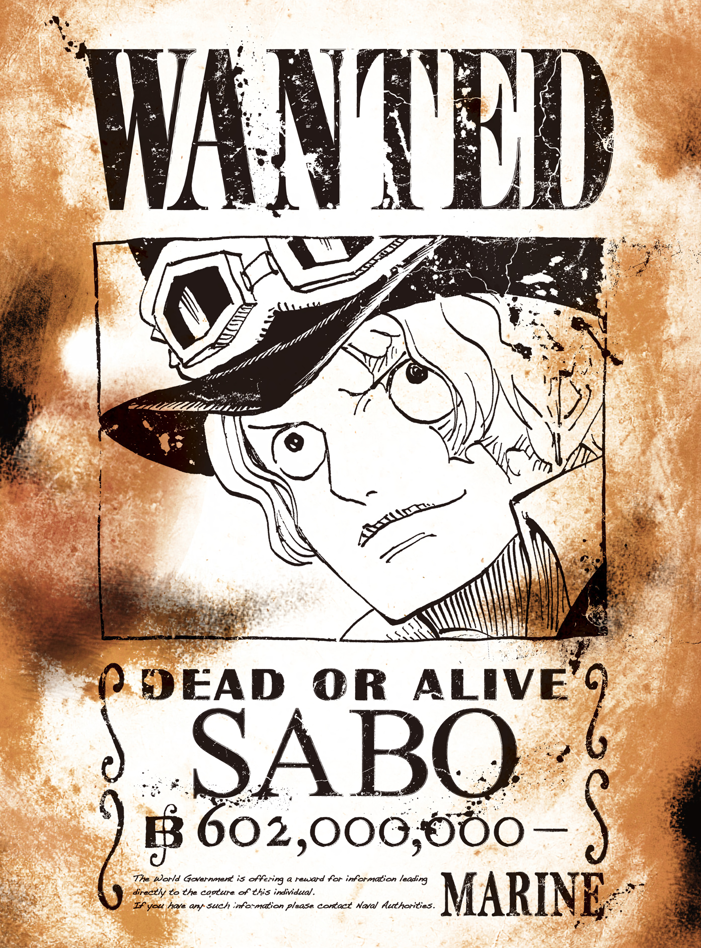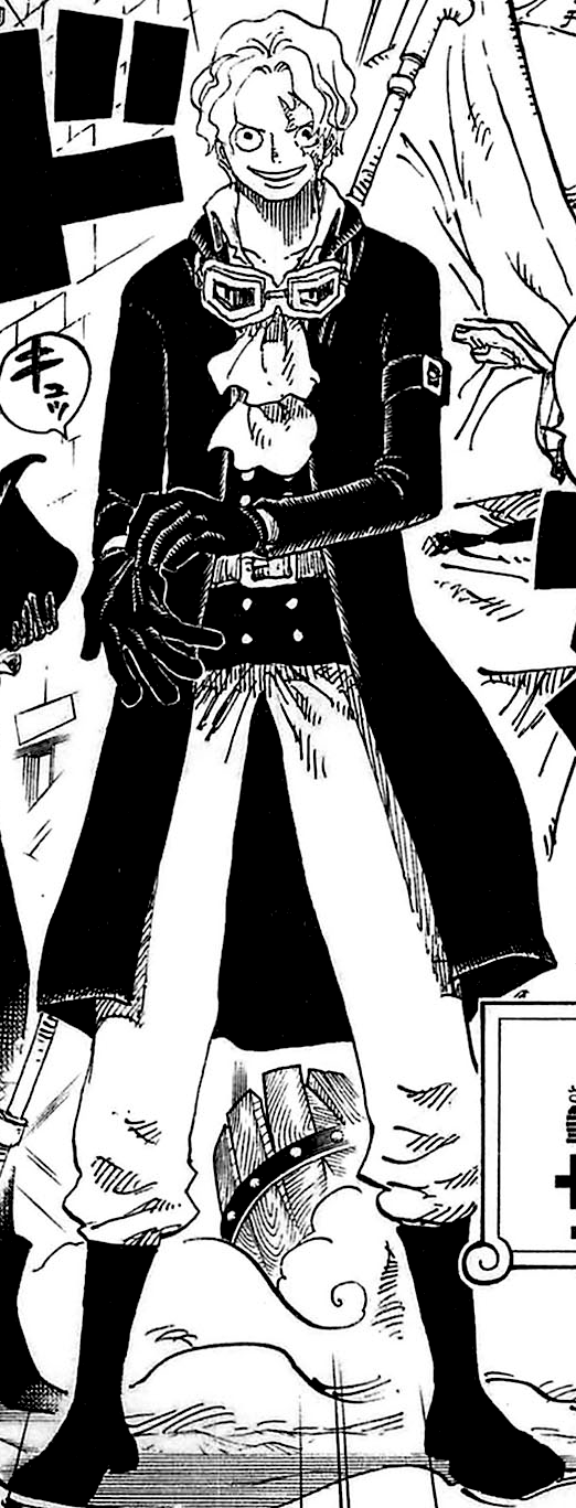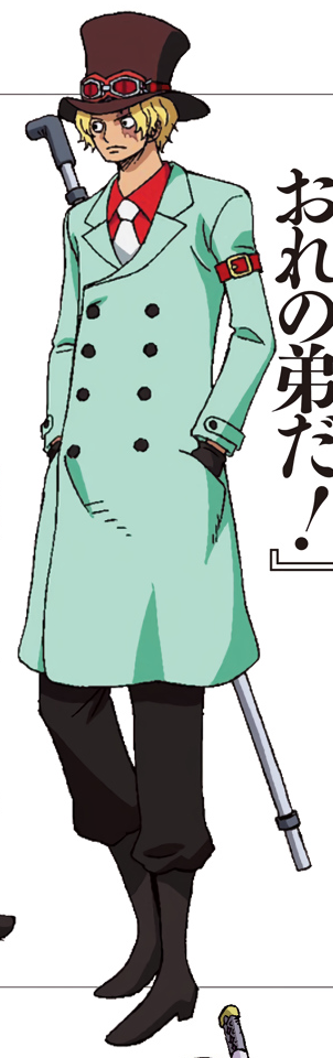Sabo[8][9] (サボ, Sabo) est le deuxième membre le plus important de l'Armée Révolutionnaire derrière Monkey D. Dragon.[2]Il est le fils d'Outlook III et Didit. Sterry, l'actuel roi du Royaume de Goa est son frère adoptif. Il est aussi le frère spirituel de Monkey D. Luffy et de Portgas D. Ace.