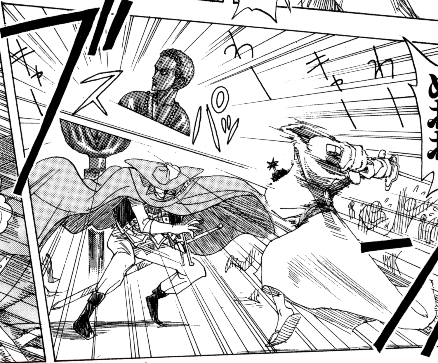Le moment où il coupe la tête du dragon de son vivant ressemble étrangement à la scène dans laquelle Zoro coupe la tête du dragon de Punk Hasard.