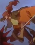 Dans son concept art, il est représenté avec une épée au fourreau à la taille.[4] Il était assez habile dans son utilisation, vainquant facilement d'autres pirates dans la Vallée des Dieux en coupant leurs propres épées avec la sienne.[7]