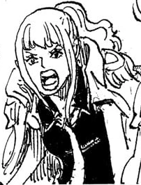 Sur un navire quelque part en mer, Dans la cale, elle surveille Doflamingo dans sa cage, enchaîné de part en part par des chaînes de Granit Marin. Le démon céleste se moque du fait qu'il trouve que Fujitora est un abruti, car selon lui il a raté une grosse opportunité, celle de vaincre Luffy et Law s'il avait œuvré avec lui.