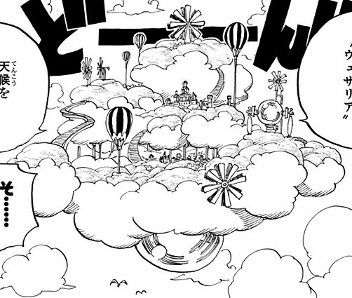 Weatheria (ウェザリア, Wezaria) est un îlot Céleste artificiel[2] spécialisé dans l'étude des climats et de l'atmosphère mais aussi sur la géographie du monde. C'est sur cette île que Nami fut expédiée par Bartholomew Kuma durant l'incident des Sabaody.