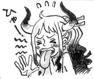 - ↑ One Piece Manga — Tome 111 Chapitre 1123, Mini-Aventure: Le Pèlerinage de Yamato, le Fils du Démon, Vol. 11 - "Obligés de savourer un oden en compagnie de celui qu'ils détestent !"