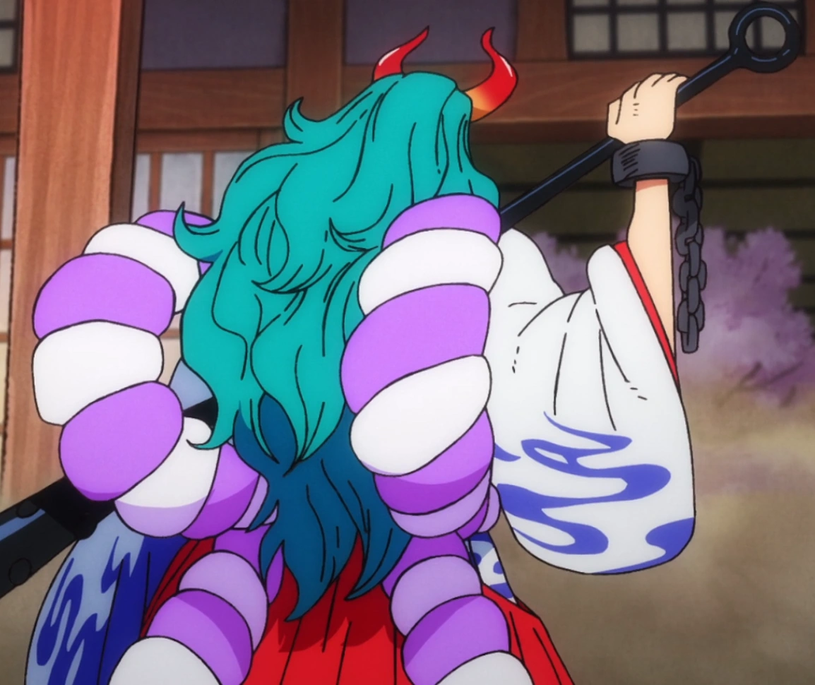 Il y a un certain temps, Yamato, qui voulait prendre la mer, a mangé un Fruit de type Zoan Mythique, le Inu Inu no Mi, modèle Okuchi no Makami, que son père Kaidou avait récupéré, et l'a mangé par inadvertance, parce qu'elle avait faim, devenant ainsi pour toujours une enclume.[22]