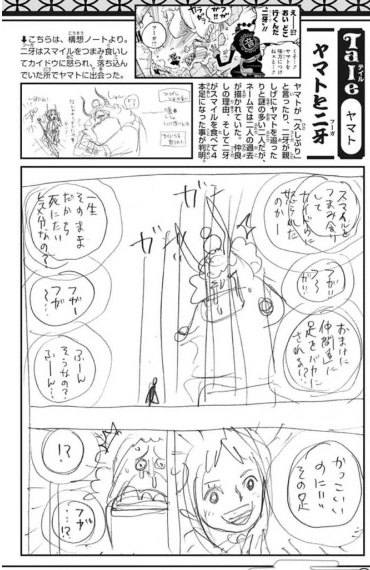 - ↑ SBS One Piece Manga — Tome 101 : Le nom de l'arme de Yamato est révélé.