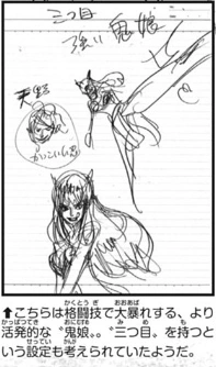 - ↑ One Piece Manga — Tome 111 Chapitre 1129, Mini-Aventure: Le Pèlerinage de Yamato, le Fils du Démon, Vol. 16 - "La ninja du village d'Amigasa en plein entraînement."