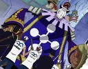 - ↑ Manga One Piece — Vol. 40 Chapter 384, Baskerville orders to set the Just Eleven Jurymen loose to defend Enies Lobby.