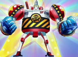 Dalam penampilan pertamanya, robot tidak melakukan banyak hal, terutama karena sebagian besar serangan justru berasal dari Franky sendiri ketika ia keluar dari kokpit, sampai ke titik bahwa Robin turut berkomentar apakah robot memiliki kegunaan dalam pertempuran. Meskipun komentar itu hanya lelucon, kekuatan robot kemudian menjadi sesuatu yang harus diperhitungkan, seperti ditunjukkan dalam pertempuran melawan Baby 5 dan Buffalo[2], memiliki persenjataan yang powerful dan General Body (将軍の体(ジェネラルボディ), Jeneraru Bodi?) sangat tahan terhadap kerusakan. Terlihat tak ada serangan kuat Baby 5 yang mampu merusaknya, yang diklaim Baby 5 bahwa serangannya bahkan akan mampu merusak Pacifista. Kemudian tembakan rudal secara telak hanya mampu mengetuk sedikit, tanpa menimbulkan kerusakan dan kombinasi serangan powerful Baby 5 dan Buffalo hanya mampu merusak sedikit tangan robot.