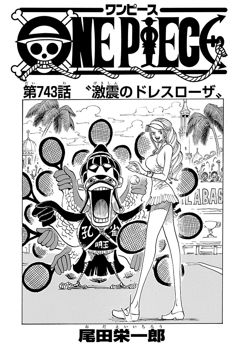 Chapter 743 berjudul "Dressrosa Yang Bergejolak".