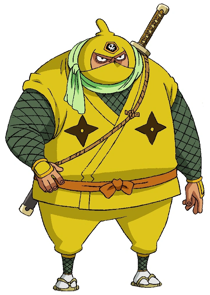 - ↑ Manga dan Anime One Piece — Vol. 100 Chapter 1006 (p. 9) dan Episode 1022, Daikoku, Chome, Bishamon, Jigoku Benten, Kazekage dan Hanzo terkagum-kagum dengan penampilan Hyogoro.