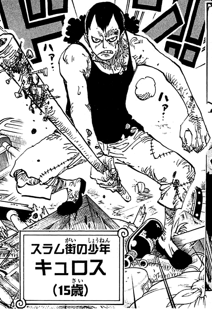 - ↑ 14,0 14,1 14,2 14,3 14,4 14,5 14,6 14,7 Manga One Piece — Vol. 75 Chapter 743, Kyros kembali ke bentuk manusianya.
