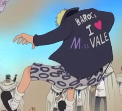 Selama pertempuran di Alubarna, Mr. Love terlihat di tengah perang dengan menyamar sebagai tentara pemberontak. Namun ia kemudian ditangkap oleh sersan mayor Tashigi.