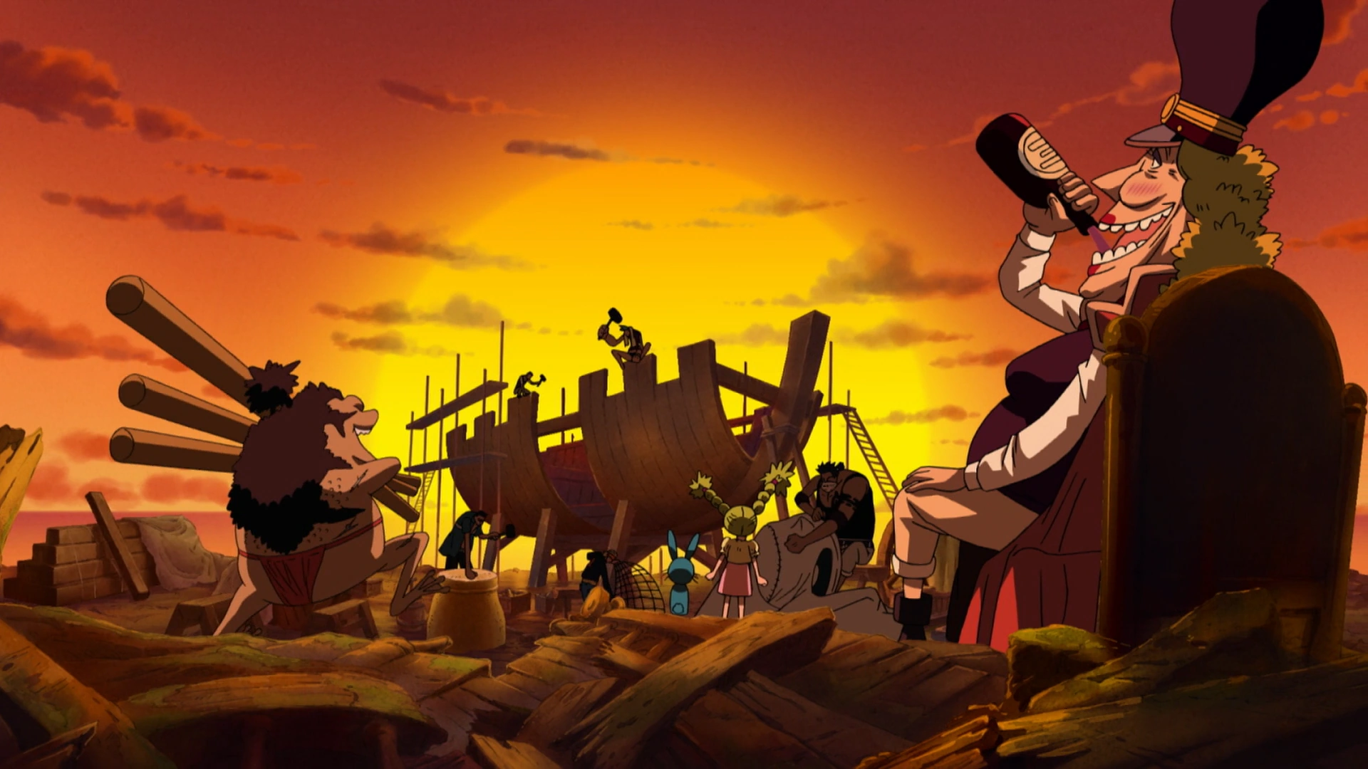 Beberapa pembuat kapal sedang bekerja pada pembangunan Thousand Sunny.
