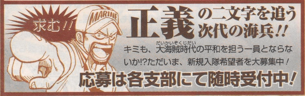 - Ripper tampil di iklan yang memanggil orang-orang untuk bergabung dengan Marinir, yang disertakan dalam tambahan Grand Times No. 1196 Issue. Iklan tersebut memanggil siapa saja yang ingin mengejar "Keadilan" dan membawa kedamaian selama Zaman Bajak Laut yang Hebat, dan menyatakan bahwa lamaran dapat diserahkan kapan saja dan di kantor pusat mana pun.