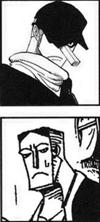 P:Halo!!kalau mendengar kata Kaku Kaku pasti Aku langsung teringat pada kaku.Tapi,ternyata masih ada tokoh yang wajahnya lebih persegi,Lho(Kaku=persegi).Apa yang dilakukan pria berwajah persegi di Vol.35 halaman 29,panel ketiga dari kiri itu?Siapa dia?Kalau Anda tidak menjawab,akan kubuat wajah Anda jadi persegi seperti dia!!
