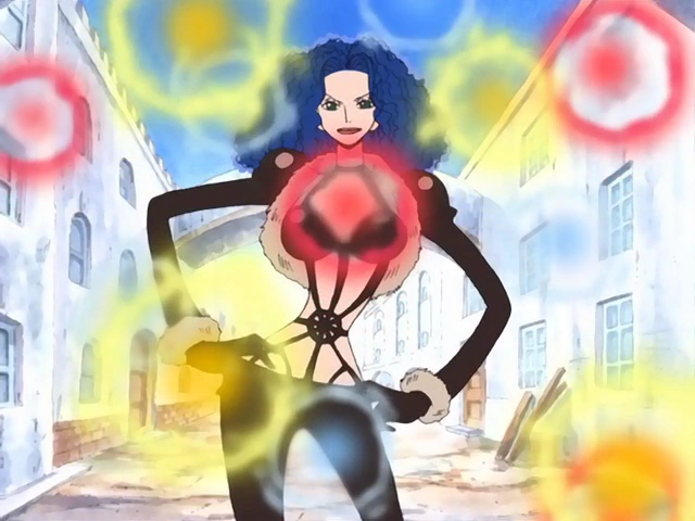 - ↑ Manga dan Anime One Piece — Vol. 21 Chapter 191 dan Episode 117, Nami berusaha menyerang Miss Doublefinger dengan Thunder Tempo.
