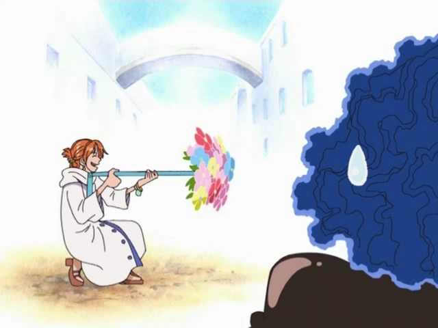 - ↑ Anime One Piece — Episode 226, Nami menciptakan sebuah thunderstorm melawan Foxy dan Porche.