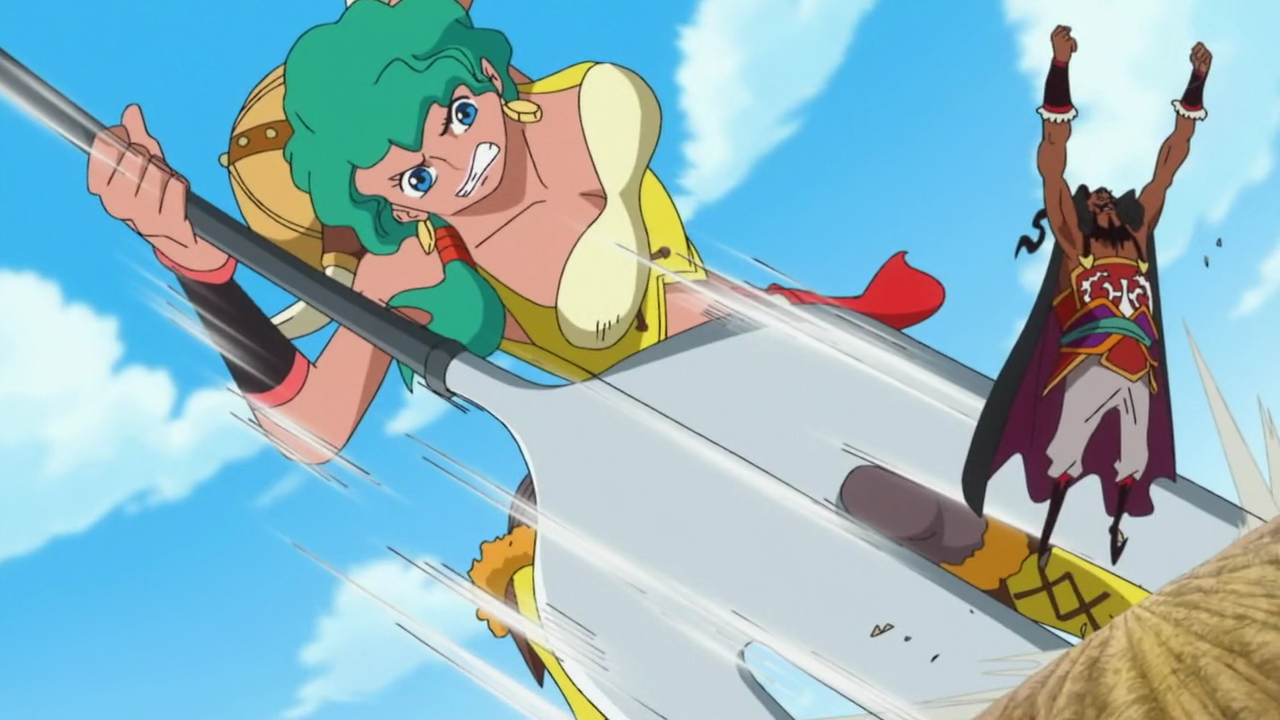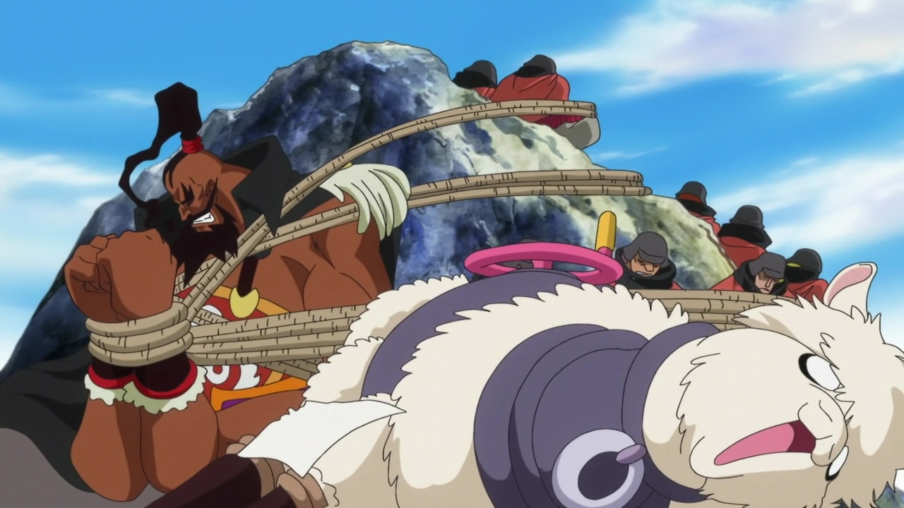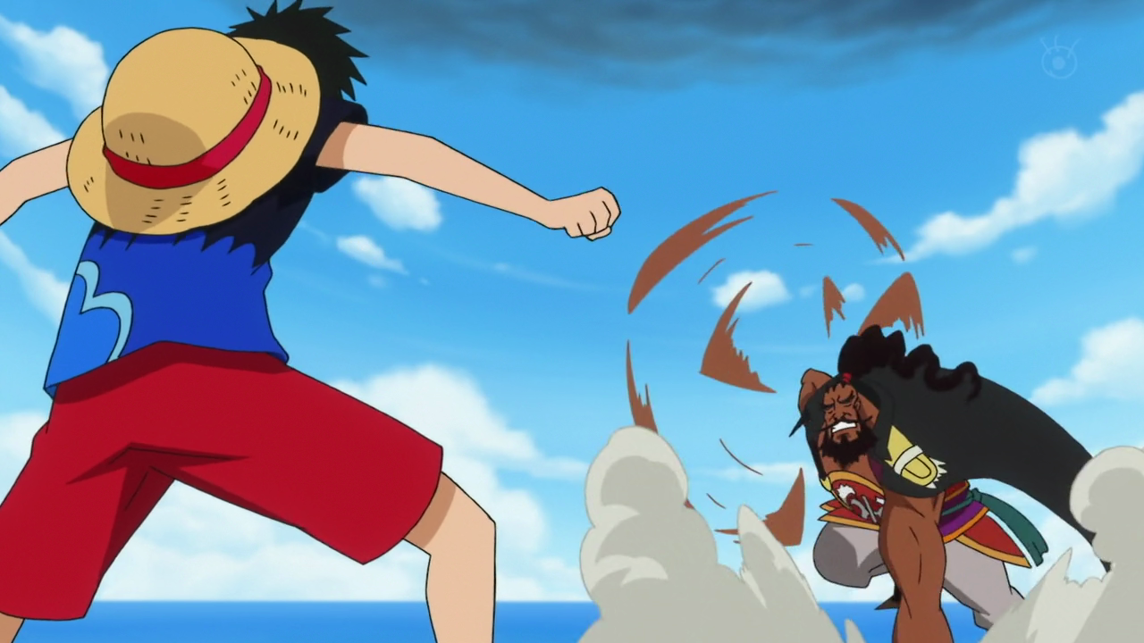 Lily mulai tumbuh di dalam tubuh Luffy, memutar dan meregangkan tubuhnya saat ia menjadi membesar. Luffy tumbuh menjadi ukuran Raksasa, tumbuh dua tanduk dari helmnya. Shuzo mengatakan pada Luffy bahwa merubah tubuhnya tidak merubah statusnya sebagai bajak laut. Serangan bazooka dari Alpacacino terbukti tidak mempan terhadap Luffy sekarang, kemudian Luffy berkomentar bahwa ia lupa dengan keberadaan mereka di sana. Luffy mulai menyerang, tetapi Shuzo dapat menghindarinya karena pergerakan Raksasa lambat, dan Luffy tidak bisa bersaing dengan kecepatannya.[1]