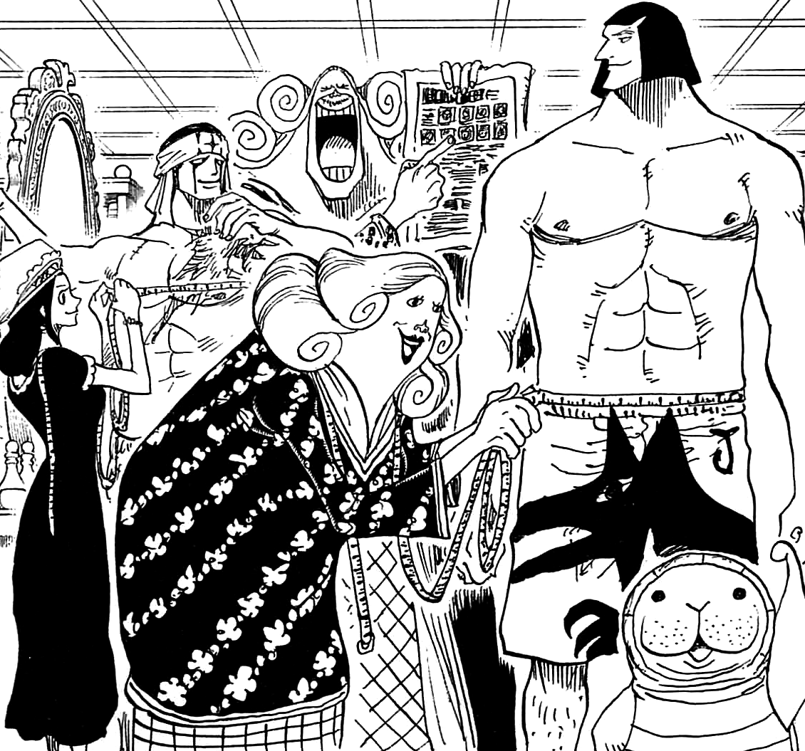 - ↑ Manga One Piece — Vol. 38 Chapter 363, cerita sampul: Miss Goldenweek "Operasi: Temui Baroque Works" Vol. 5.