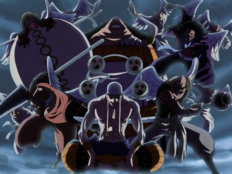 - Head Enforcer Yama: Defeated by Nico Robin, and banished through Cloud Drifting.