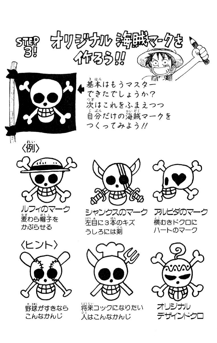 Step 3! Buatlah Jolly Roger-mu sendiri!! (STEP 3! - オリジナル海賊マークを作ろう!!) adalah kesimpulan dari segmen 3 bagian yang ditampilkan dalam volume ini. Di sini, penulis memulai aktivitas interaktif bagi para pembaca untuk menciptakan Jolly Roger ala One Piece mereka sendiri.