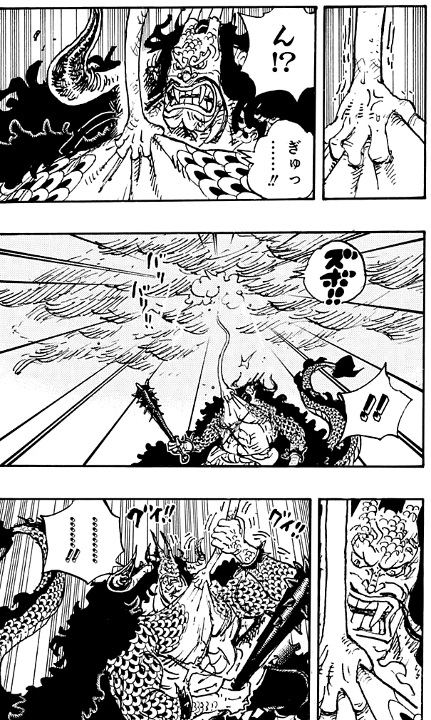 - 1049. The World That Should Be (目指すべき世界, Mezasubeki Sekai?): Luffy akhirnya mengalahkan Kaidou dan Momonosuke menciptakan Awan Apinya sendiri untuk mendaratkan Onigashima dengan selamat.