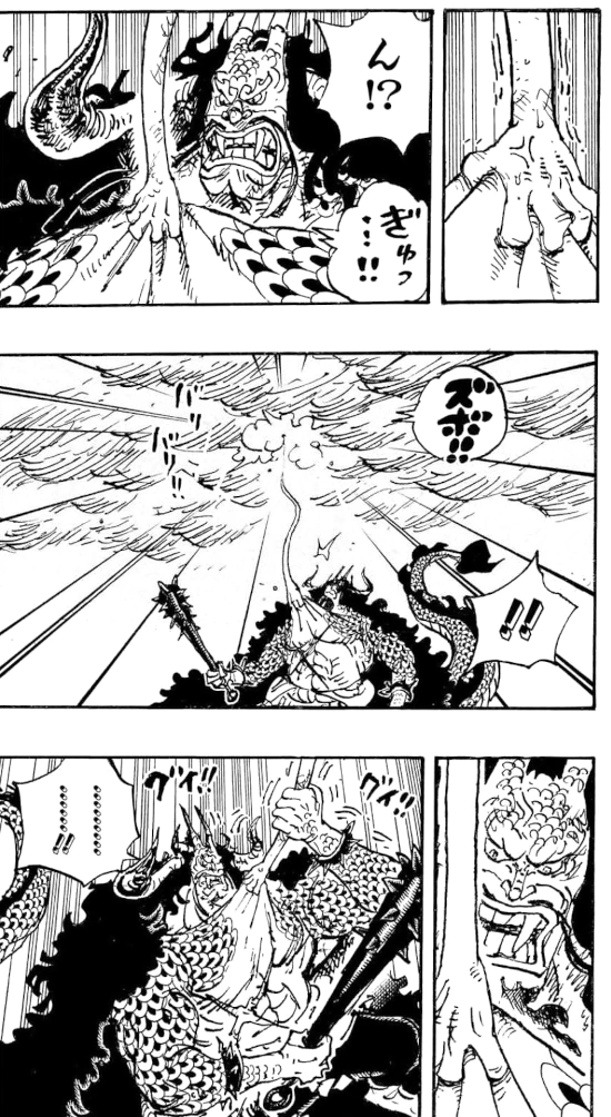 Chapter 1047, halaman 12 Koreksi: Mengganti tangan Luffy dari kanan ke kiri untuk konsistensi. |