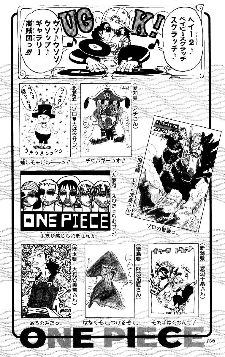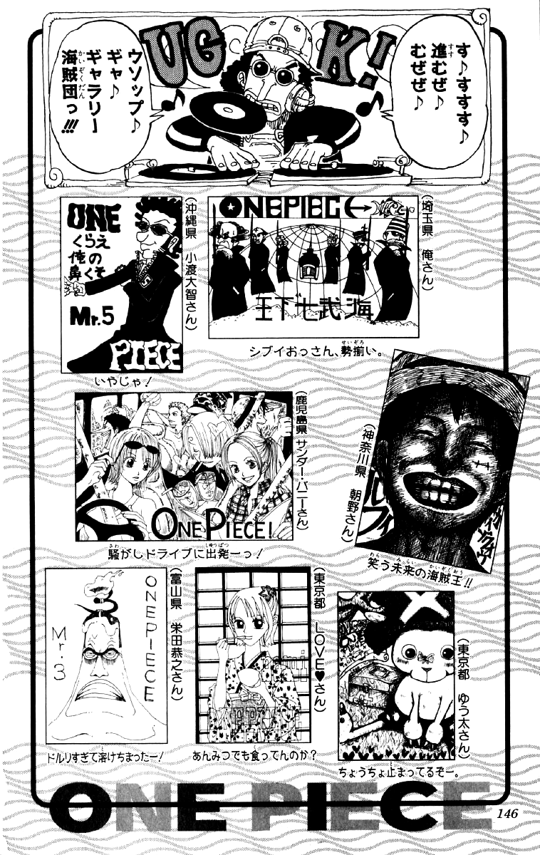 148. Unbreakable (折れない,Orenai?): Wapol mencoba dan gagal menghancurkan bendera bajak laut Hiriluk.