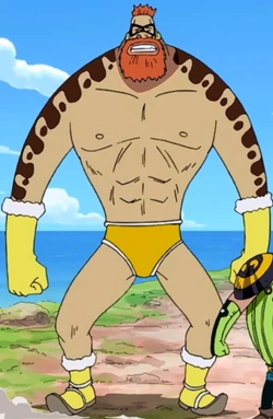 - ↑ 1,0 1,1 1,2 Manga dan Anime One Piece — Vol. 33 Chapter 309 dan Episode 210, Big Pan, Wotan pertama dalam serial ini, memulai debutnya.