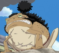Yokozuna pertama terlihat sedang berenang di lautan di depan kapal Going Merry. Kru Topi Jerami berinisiatif mengejarnya namun kapal mereka terjebak rel kereta laut. Dia kemudian berusaha menghadang laju kereta Puffing Tom namun tertabrak dan terpental jauh.