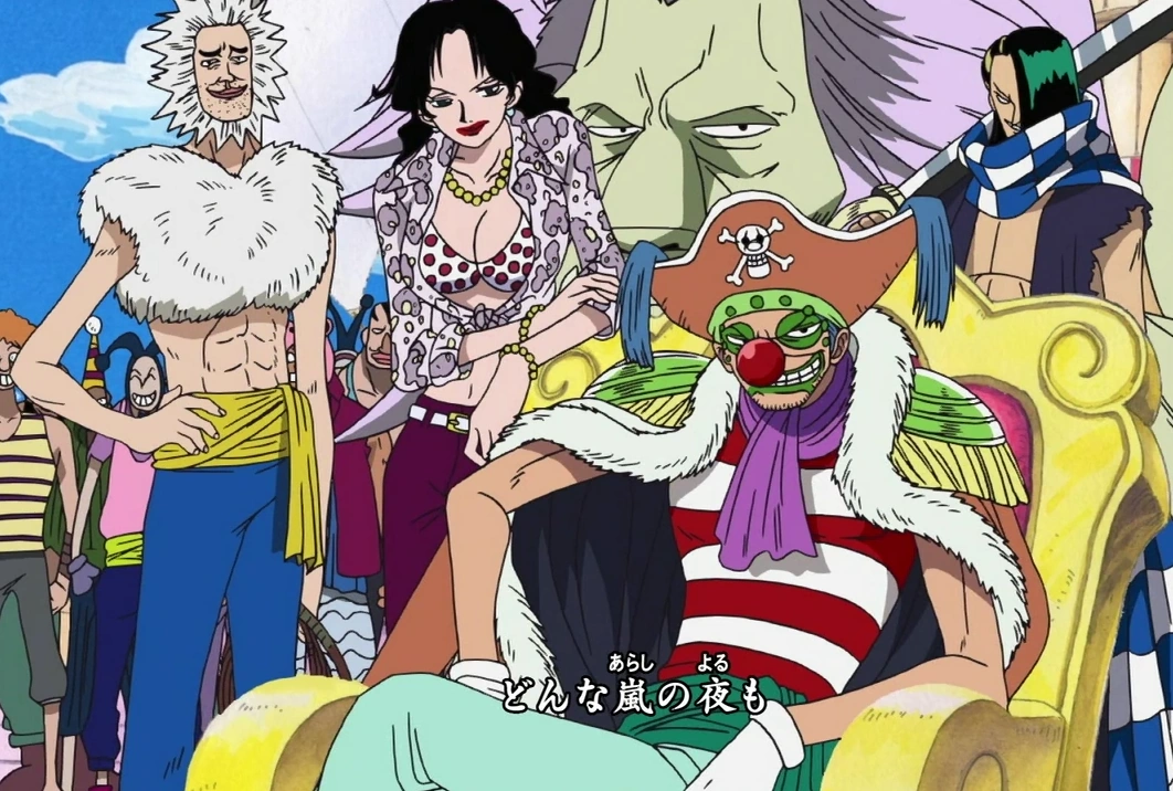 Il gruppo raggiunge Rogue Town dove Bagy intrappola Rufy sullo stesso patibolo su cui morì Roger, ma prima che riesca a decapitarlo un fulmine lo colpisce in pieno, liberando il ragazzo. Subito dopo il gruppo viene catturato da Smoker e i suoi sottoposti. Tuttavia una raffica di vento permette loro di liberarsi. Bagy ordina così di salpare verso la Rotta Maggiore per sconfiggere Rufy.