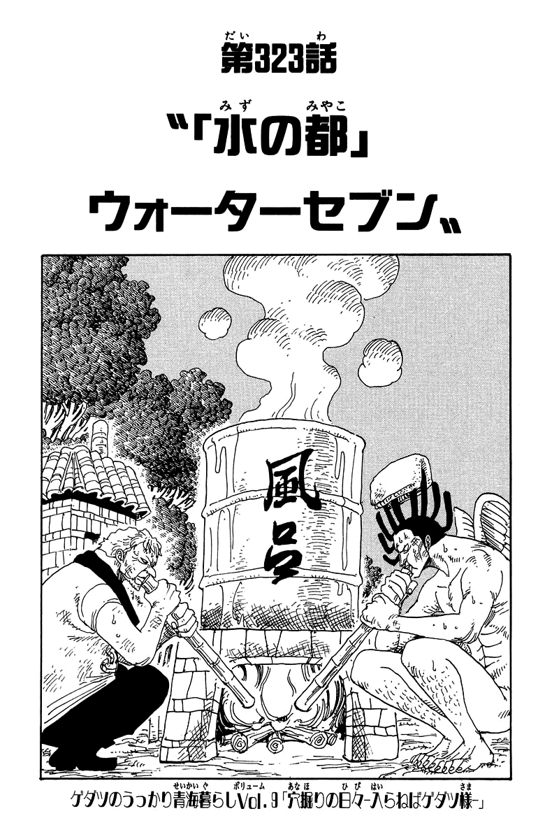 Il capitolo 323 si intitola "Water Seven, la Metropoli dell'Acqua".