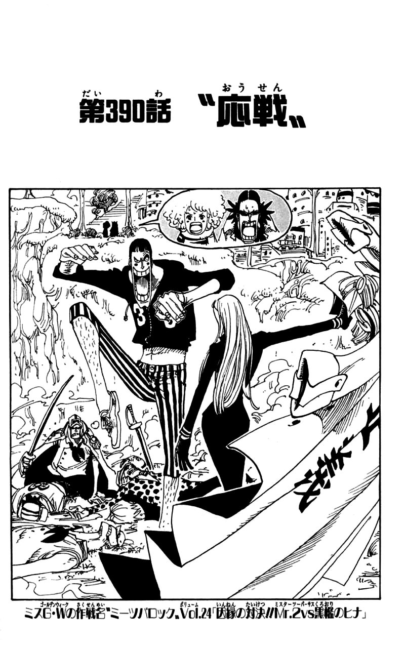 I membri della Franky Family e i Pirati di Cappello di paglia vengono attaccati dagli undici giurati integerrimi. Yokozuna viene sconfitto, ma in quel momento sopraggiungono Oimo e Karsee. I due giganti scagliano Sogeking sul tetto, dove tutti pirati sono finalmente riuniti per salvare Robin.