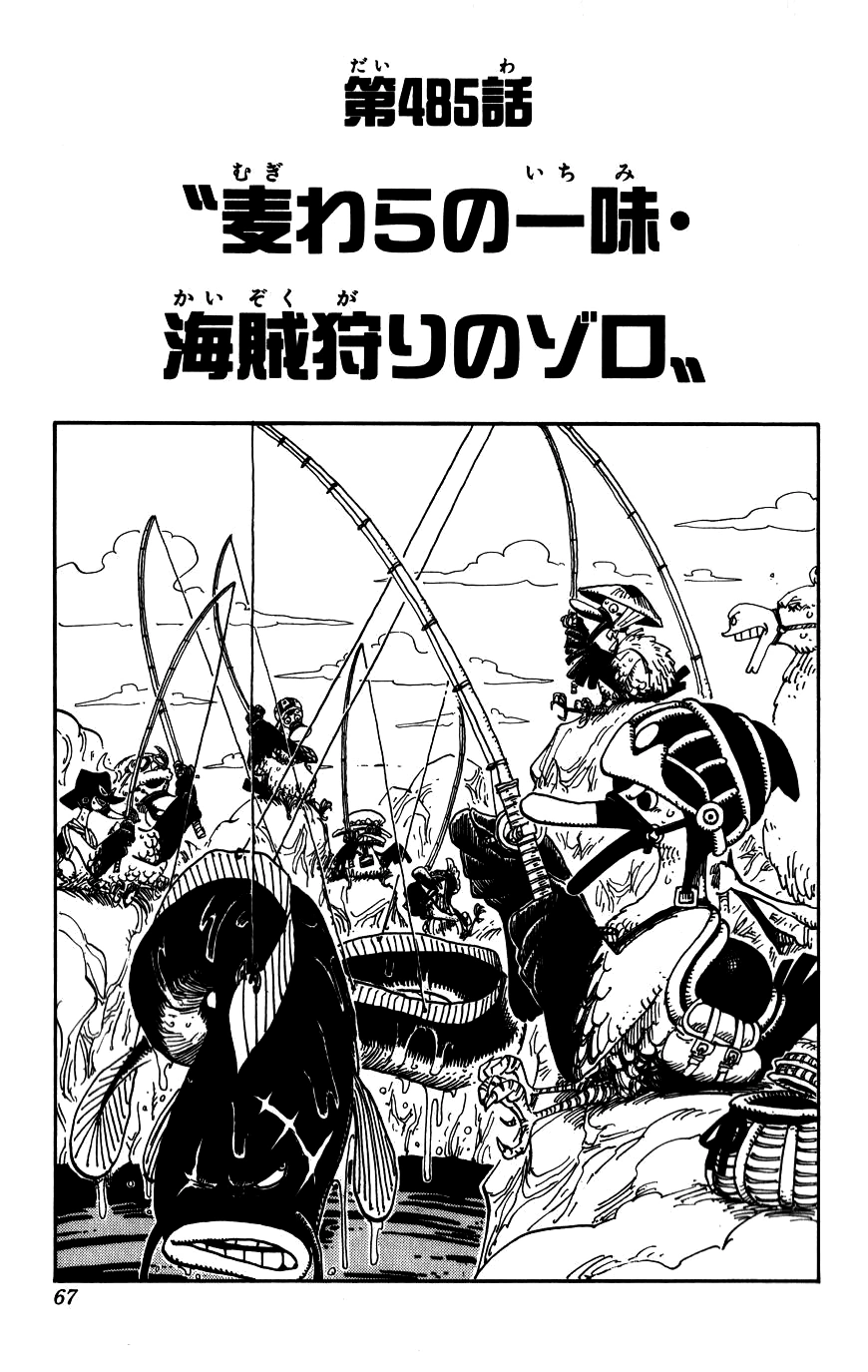 Il capitolo 485 si intitola "Equipaggio di Cappello di paglia: Zoro il cacciatore di pirati".
