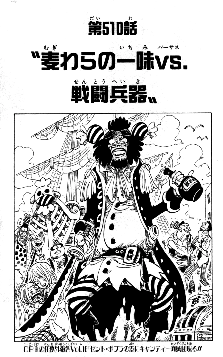Il capitolo 510 si intitola "I Pirati di Cappello di paglia contro la macchina da guerra".