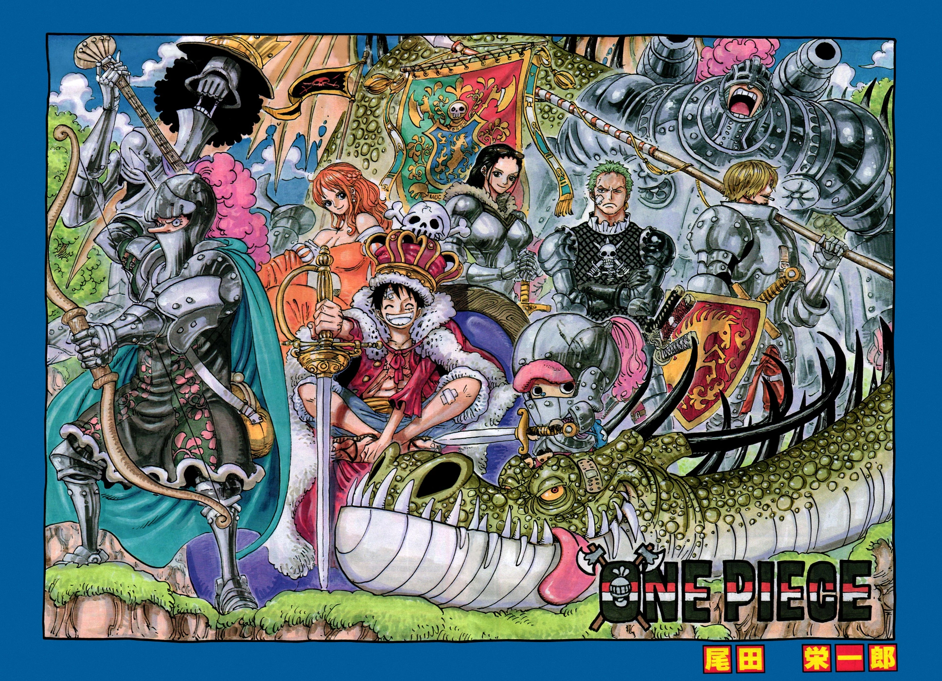 Cover a colori: la ciurma di Rufy indossa armature medievali.