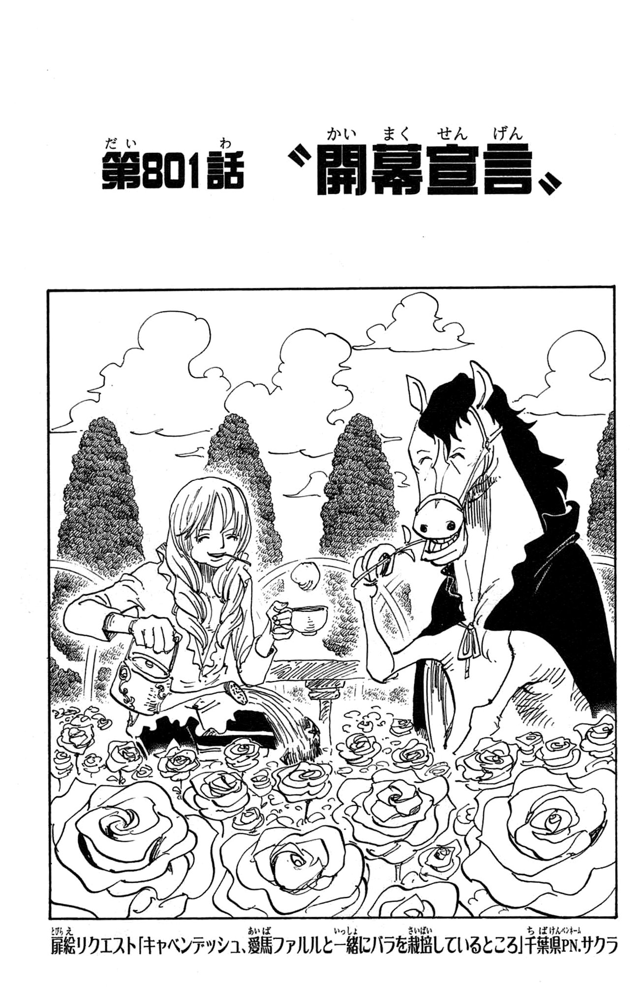 A bordo di una nave della Marina, Fujitora decide di dare la caccia a Rufy e a Law mentre Do Flamingo, prigioniero, prevede l'inizio di una grande era di scontri mortali tra i più forti pirati al mondo, con l'aggiunta delle interferenze della Marina e dei rivoluzionari. Nel frattempo la nave di Jack si prepara ad attaccare il convoglio per liberarlo.