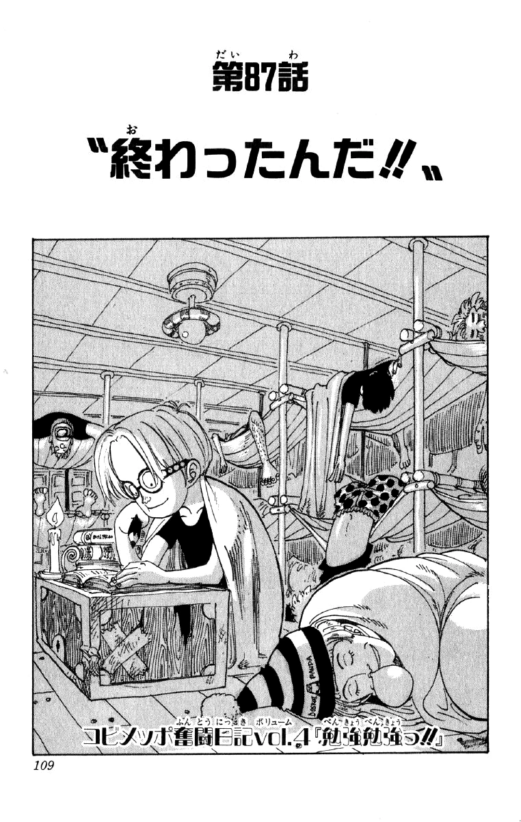 Vedendo due ufficiali di Arlong a terra, gli abitanti di Coco iniziano a credere che riusciranno davvero a sconfiggere gli uomini-pesce. Nel frattempo Pciù si allontana da Usop, disteso per terra in una pozza di sangue, convinto di avere eliminato il ragazzo. Tuttavia è stato ingannato da del ketchup. Capendo che non diventerà mai un grande pirata se non affronta i nemici, Usop si rialza e sfida l'uomo-pesce. Usando le sue abilità di bugiardo unite a quelle di cecchino, riesce a sconfiggere Pciù.
