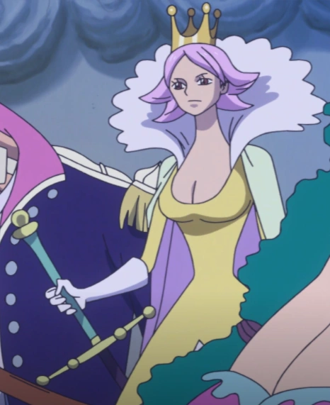 Entra poi nel mondo dello specchio facendo così parte di un'armata di diecimila soldati.[4] Giunge nei pressi di Cacao a bordo della Queen Mama Chanter per impedire la fuga dei Pirati di Cappello di paglia. Rimane poi scioccata nel vedere come la Thousand Sunny sia stata sostituita dalla nave dei Pirati del Sole un istante prima che venisse distrutta.