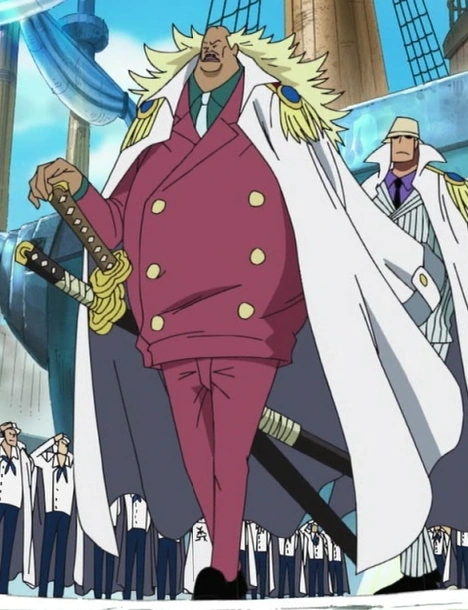 Quando gli scontri cominciano, si schiera con gli altri viceammiragli pronto a respingere gli assalti dei Pirati di Barbabianca.[7]